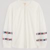Women’s Satin Frill Neck Print Top | Seasalt Cornwall | Spring Geraniums Chalk