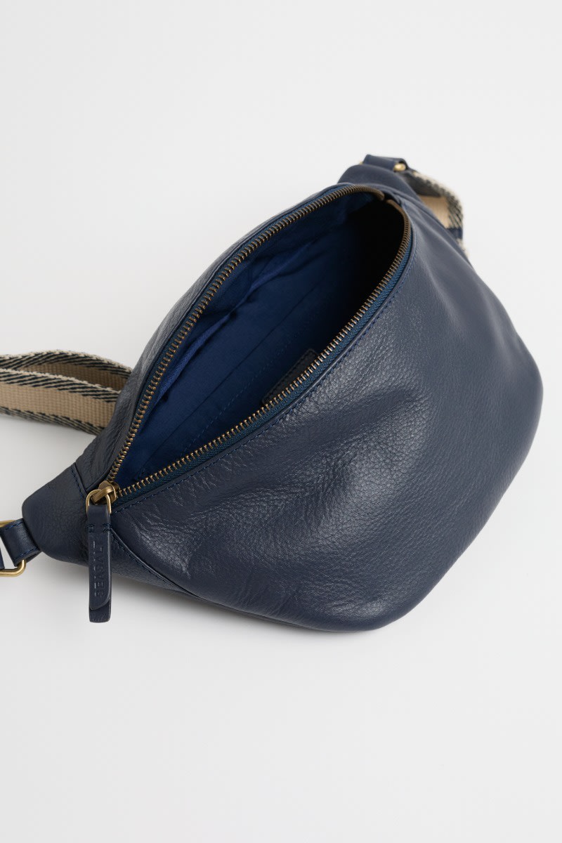Our half-circle crossbody bag is made from soft, buttery leather with a contrasting canvas strap. It’s perfect for holding your everyday essentials, with a handy pocket in the main compartment for smaller items. The zip fastening is finished with a matching leather pull. A variation of our much-loved Kevern bag.