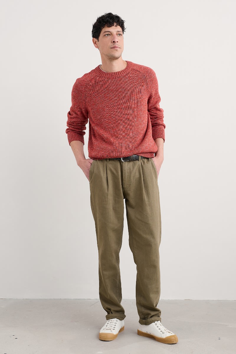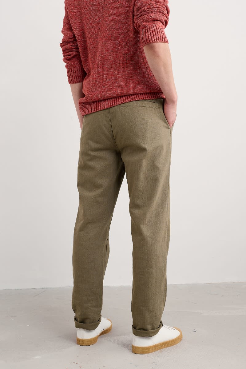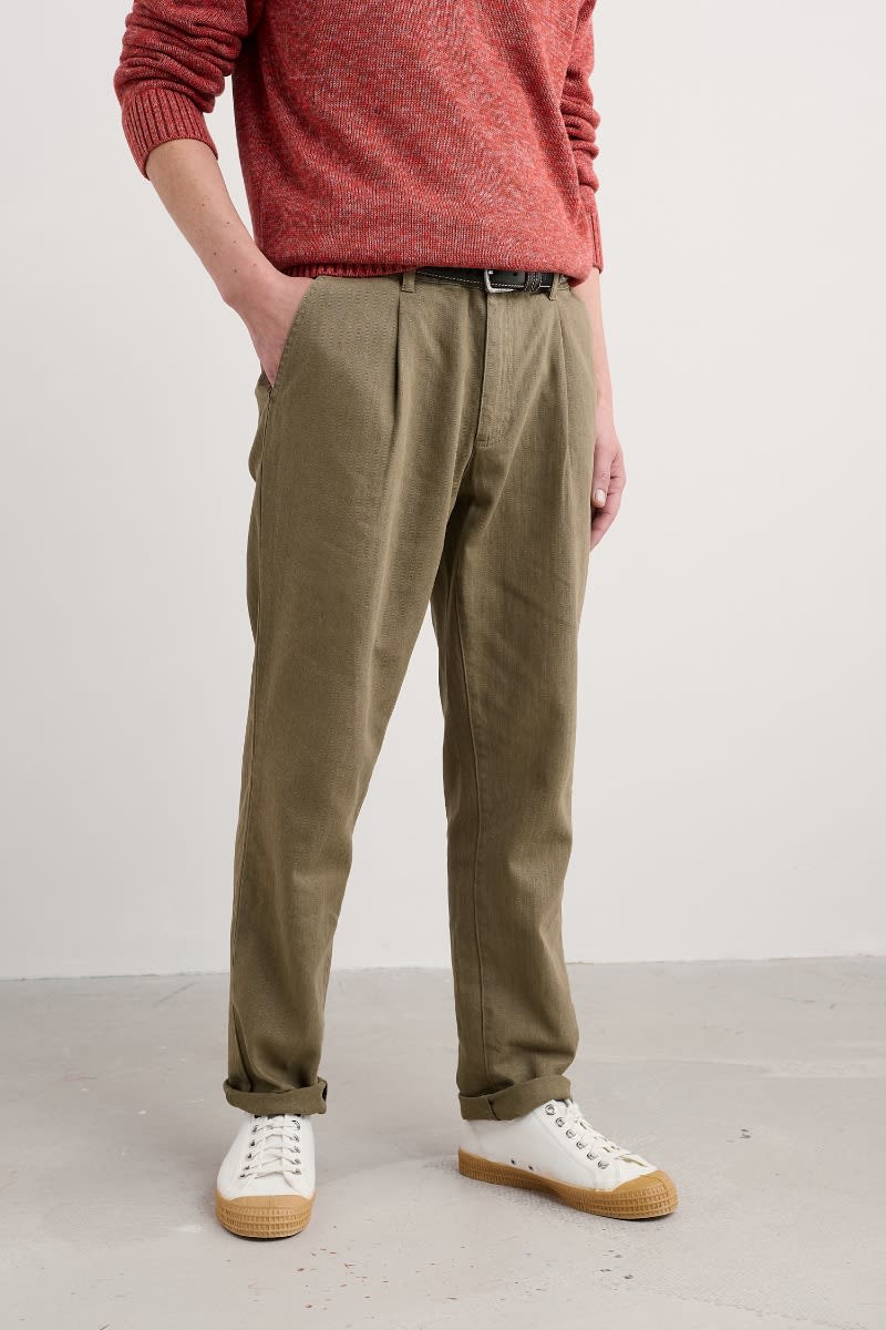 Woven from a breathable blend of organic cotton and linen, our men’s Helmsman Trousers have a relaxed tapered fit and pleat front, making them the perfect choice for days when comfort and style are key. We love these versatile trousers paired with our Tollgate Jacket.