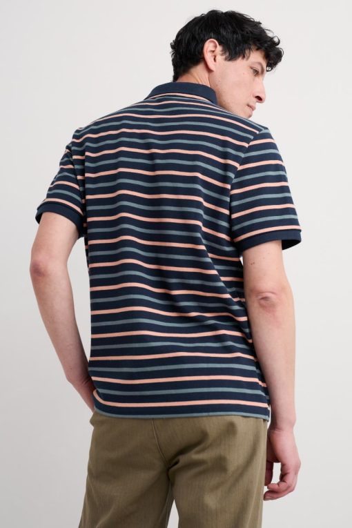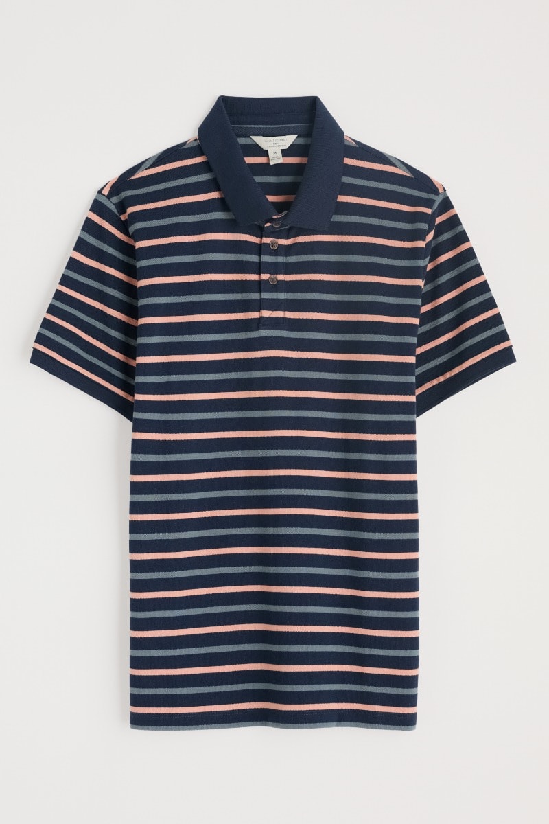 Our classic short-sleeved polo shirt is made from soft GOTS-certified organic cotton. We’ve given it stripes in rich coastal colours, which are yarn-dyed for lasting depth. Timeless polo details include a neat ribbed collar with a buttoned half placket and ribbed trims at the sleeves.