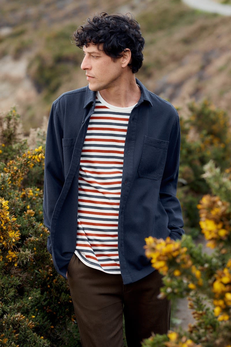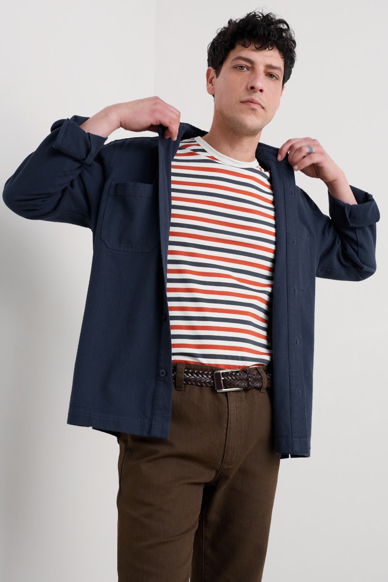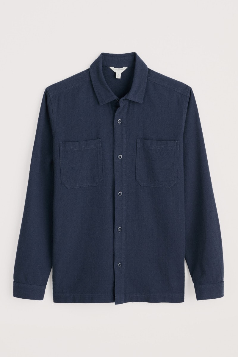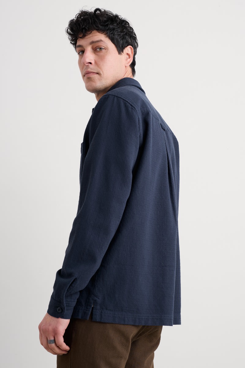 Made from pure organic cotton, woven in a textured diamond jacquard pattern, delivering subtle and tactile depth. Featuring a relaxed fit, button-up body and double chest pockets. This overshirt offers practical style with a casual edge. Perfect for layering.