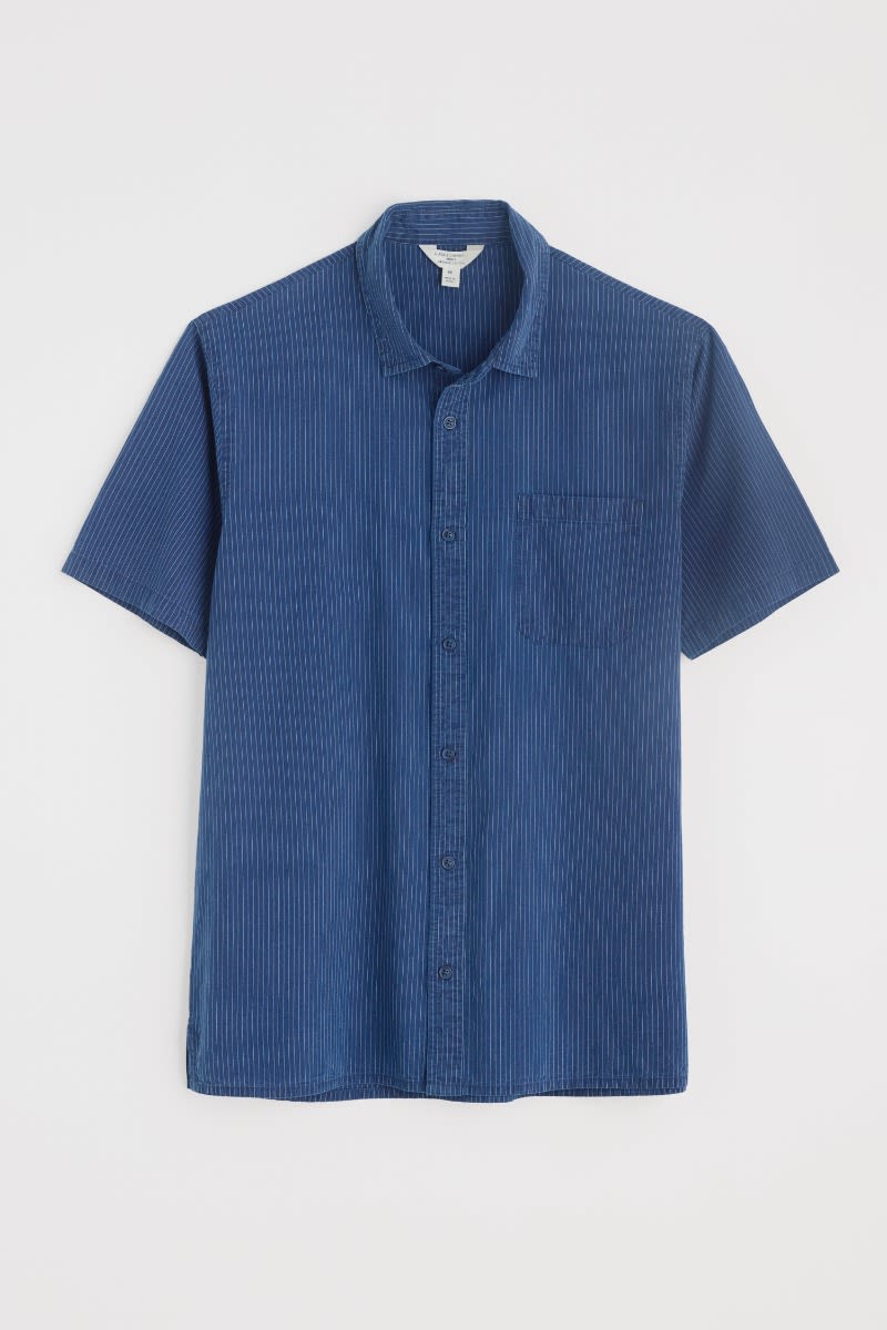 The short-sleeve version of our popular Ayre Shirt is perfect for the warmer days. It’s crafted from soft and breathable GOTS-certified organic cotton with yarn-dyed stripes in coastal colours. The easy-fitting shirt has a straight hem with side splits for wearable comfort. A neat collar, chest pocket and mock-horn buttons add classic details.
