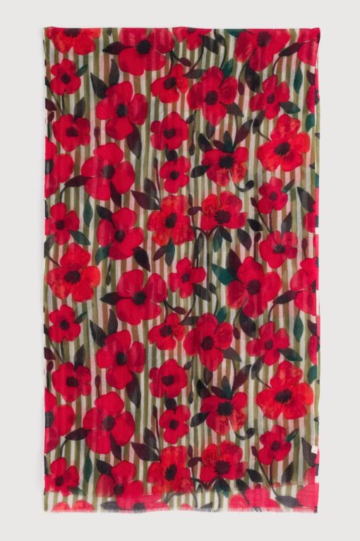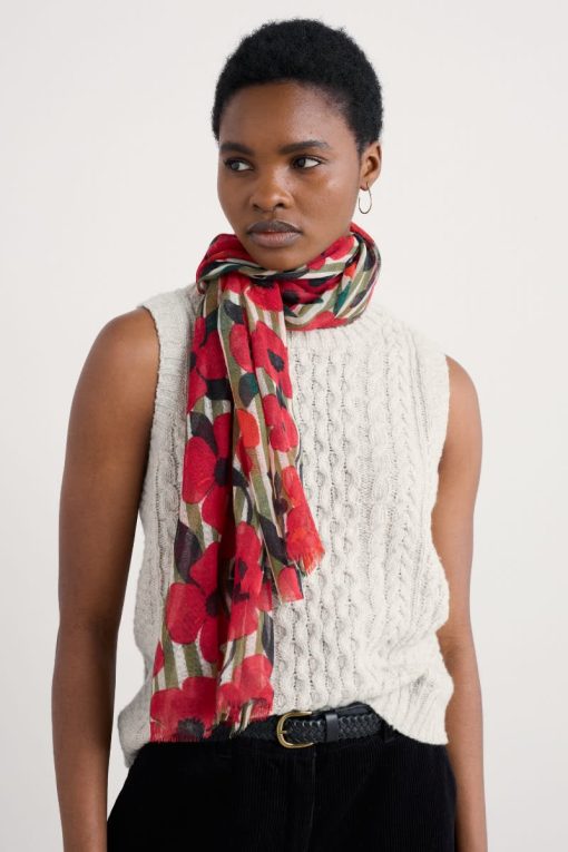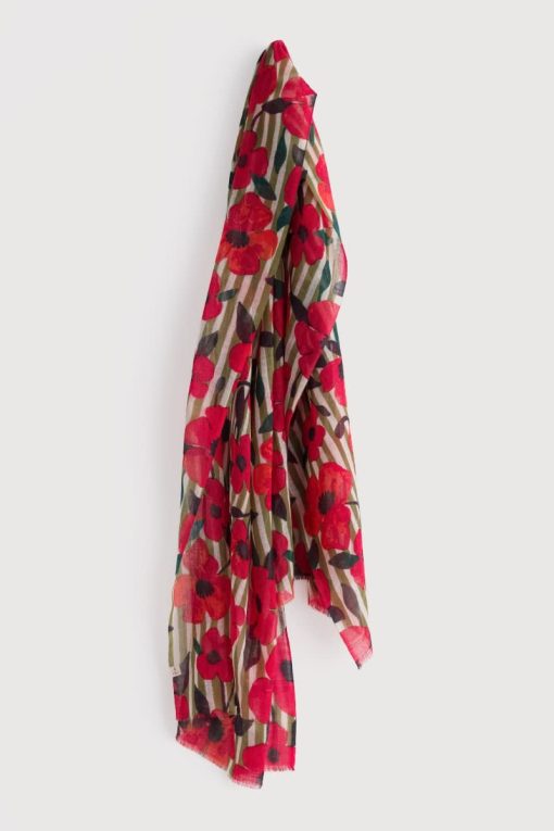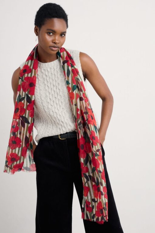 Seasalt Cornwall Accessories Scarves Pretty Printed Scarf | Stripey Floral Moss
