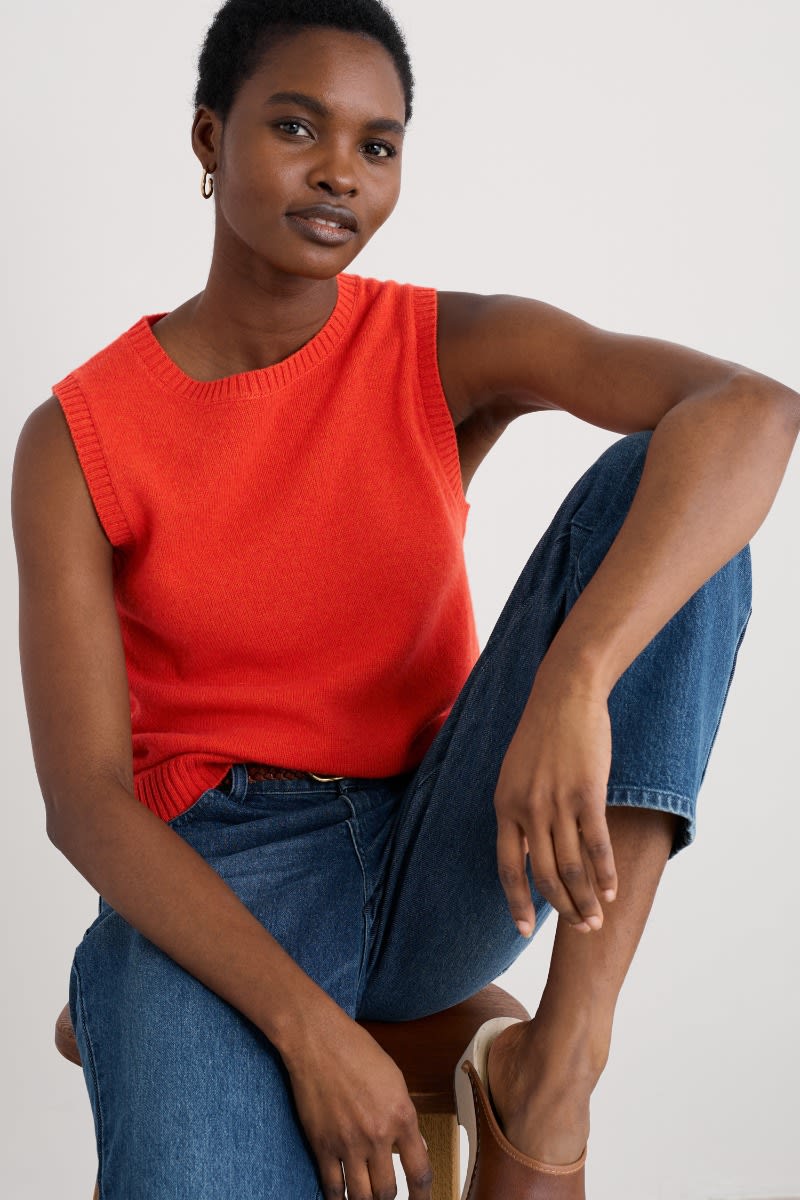 The simplest pieces of clothing can often tie whole outfits together. With a neat shape and ribbed edges, the East View Vest is made from soft, lightweight merino-rich yarn, and will layer over everything for an instant, modern update. We love it over dresses with statement sleeves, or a T-shirt and jeans, and of course with our favourite Larissa Shirt.