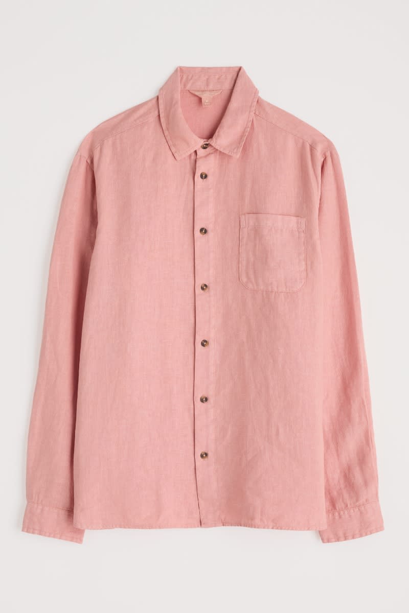 An easy-fitting shirt made from breathable linen, with long sleeves that are easy to roll up for casual weekends. The curved hem is slightly stepped so it looks great untucked, or worn unbuttoned over a T-shirt. Garment-dyed for soft and characterful colour.