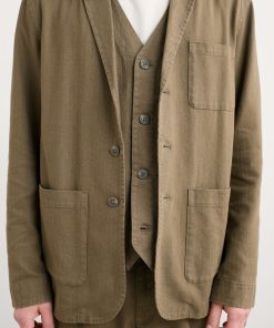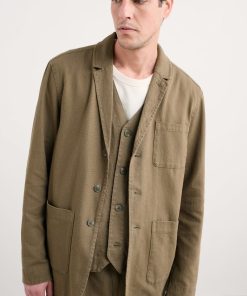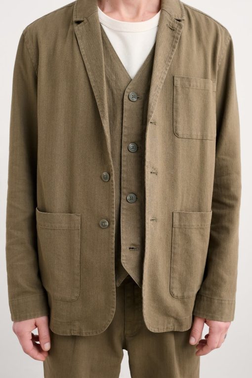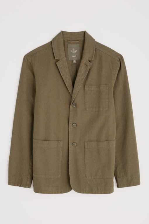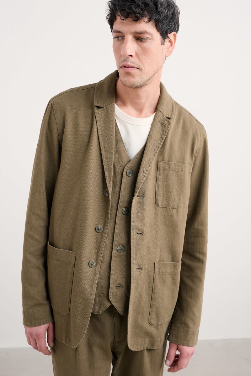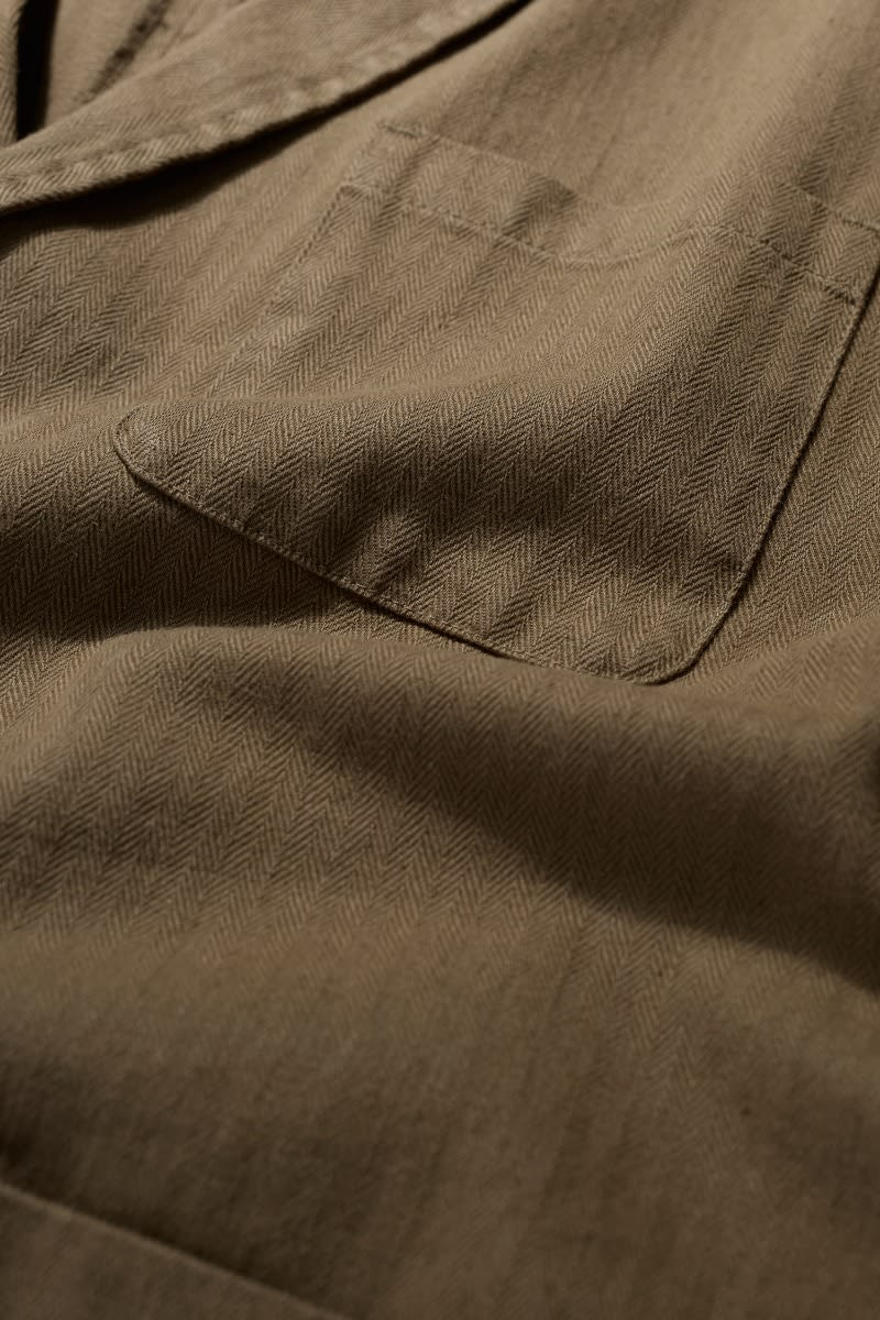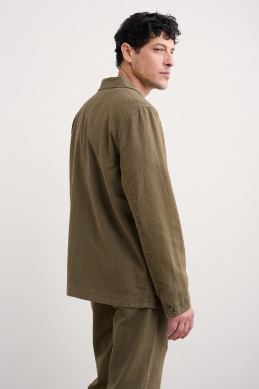 A casual jacket, inspired by the way Cornish artists would adopt the tough workwear of fishermen to wear in the studio. Made from a cotton and linen blend that is durable but comfortable, with a light herringbone texture. An easy extra layer over T-shirts or shirts. Designed to pair with the Helmsman Trousers.