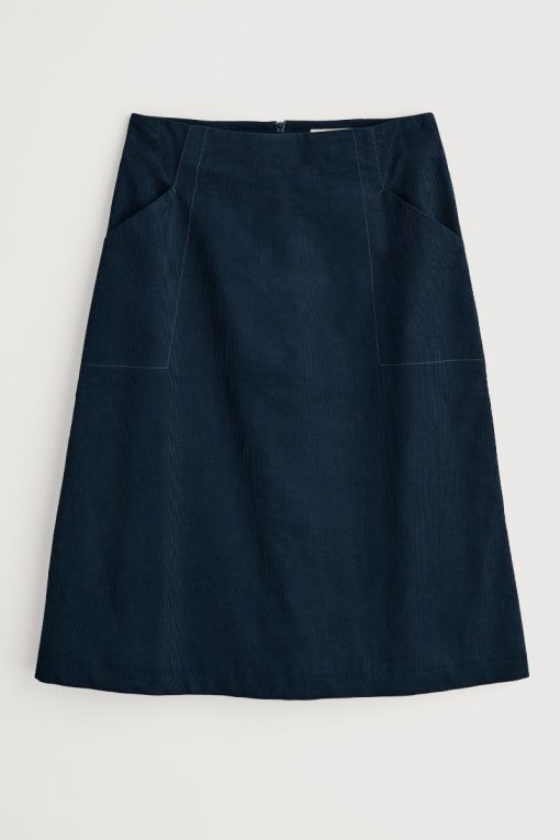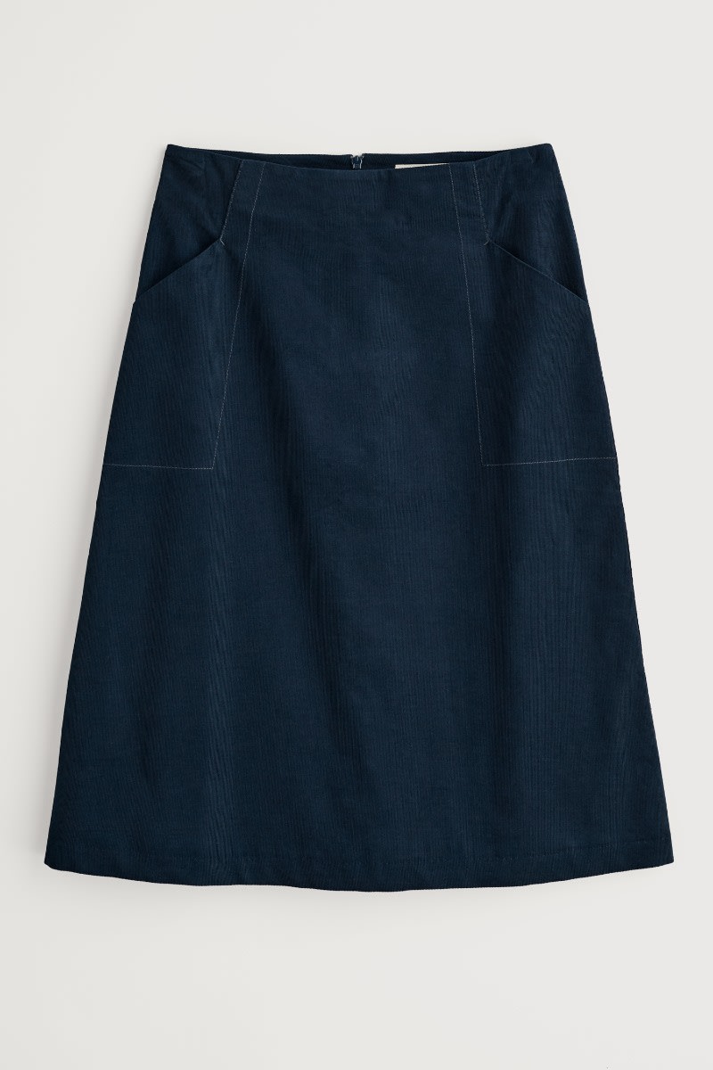 A versatile cord skirt in a choice of handcrafted, Cornwall inspired prints. In a flattering A-line that falls to just below the knee, it has a clean front with angled front pockets, and a concealed zip at the back. We love it paired with our cosy knitwear.