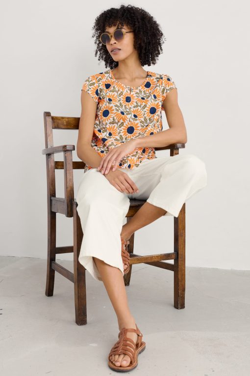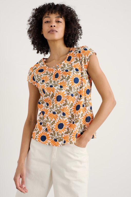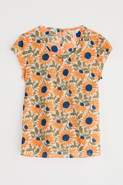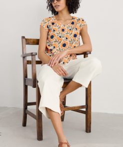 A pretty little top made from soft, cool cotton voile. Our Garden Gate top is semi-fitted with a scoop neck and cap sleeves. It’s finished off with gentle gathers on the front to give it shape, and a keyhole opening with button loop fastening on the back.