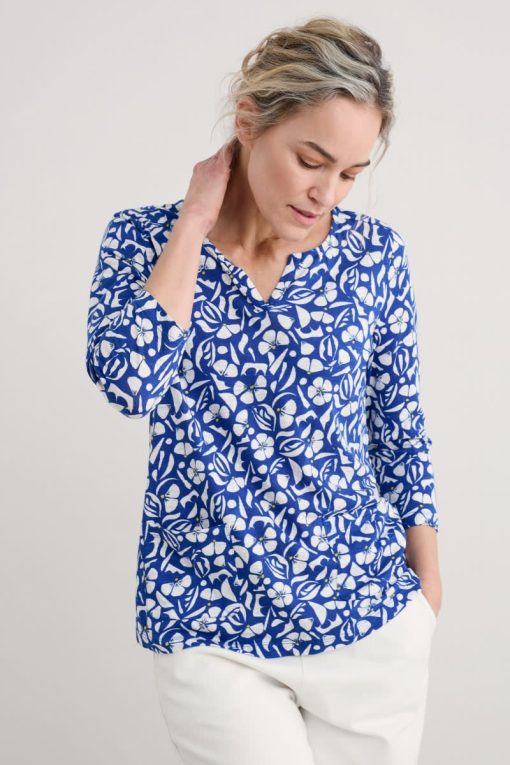 Seasalt Cornwall Women’s Gypsophilia Top | Collaged Floral Bright Marine