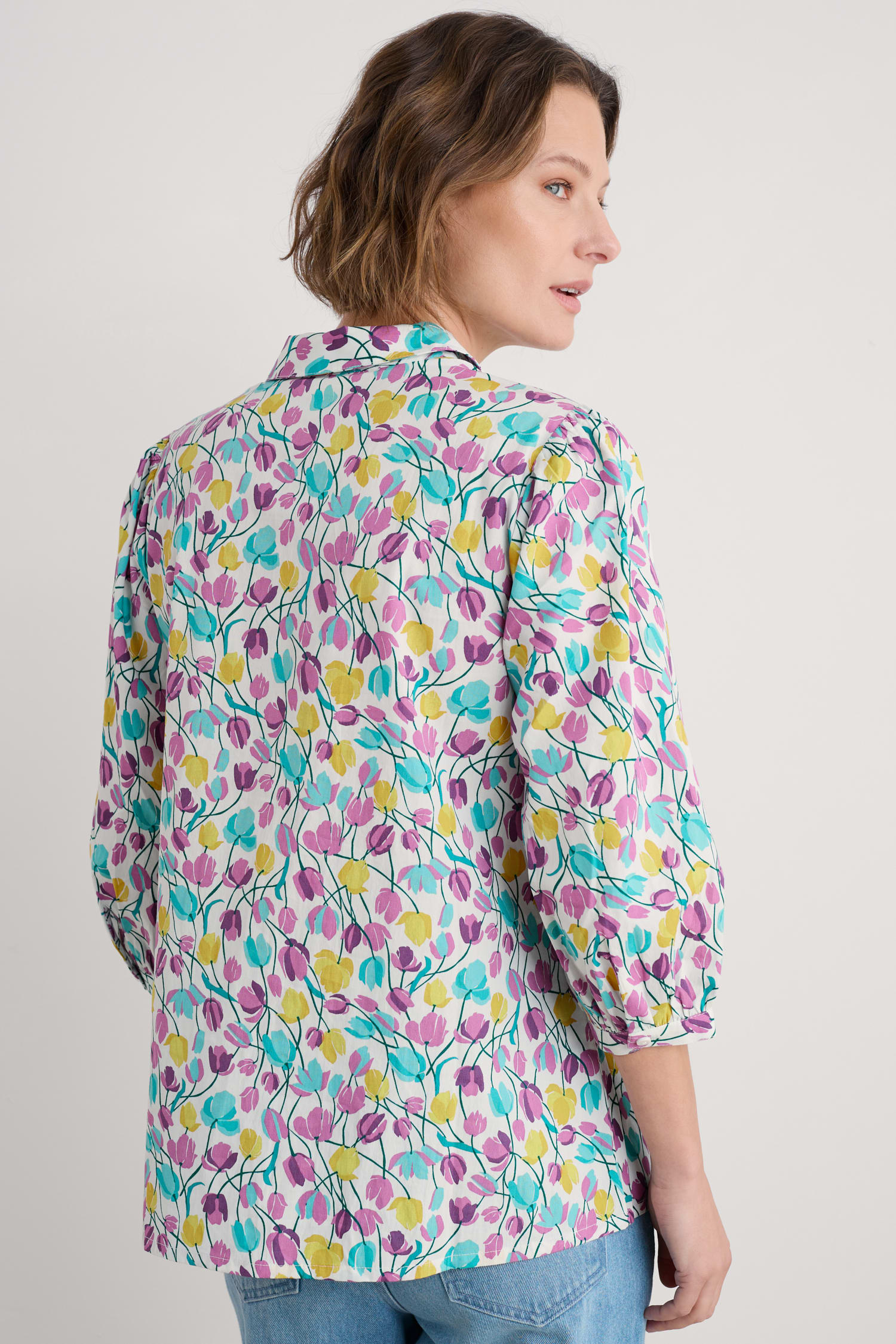 A printed organic cotton blouse with gathered cuffs and shoulder seams, which create a lovely volume through the sleeves. A great piece for layering through the seasons.