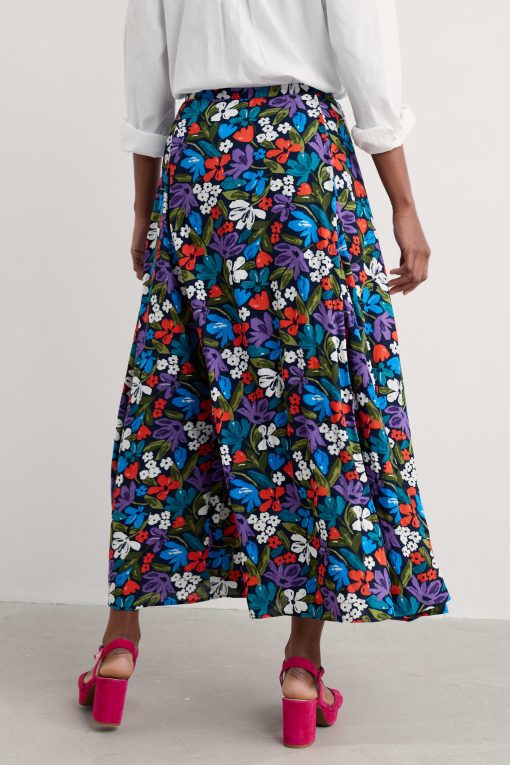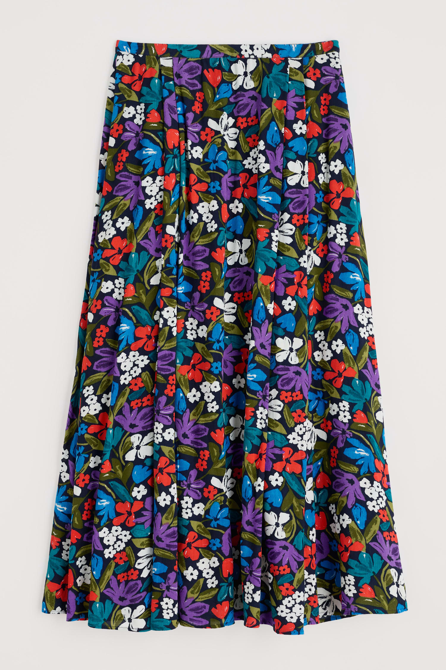 An ankle length skirt in a straight fit, with pleats at the front to give a skimming shape and subtle volume. Perfect for dressing up or down, on days when you to add a bit of easy print and elegant movement to your outfit.