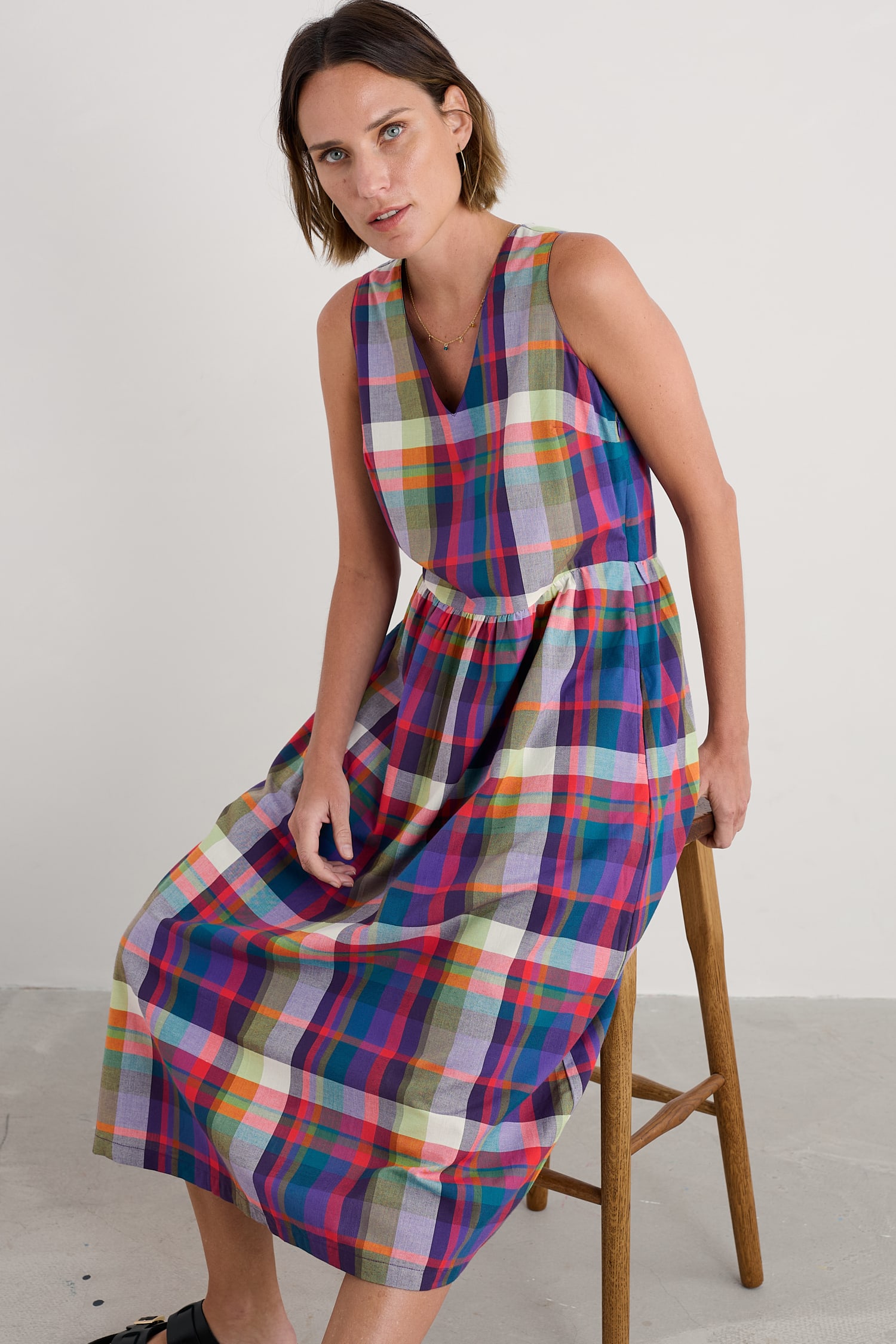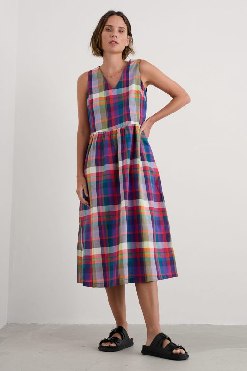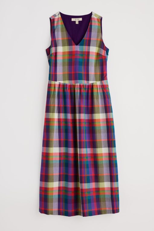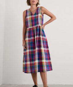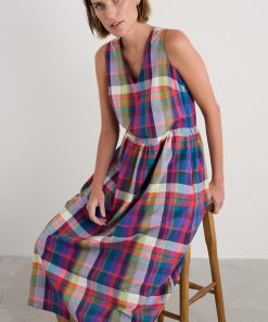 Seasalt Cornwall Women’s Lowland Heather V-neck Linen Midi Dress | Bright Marine