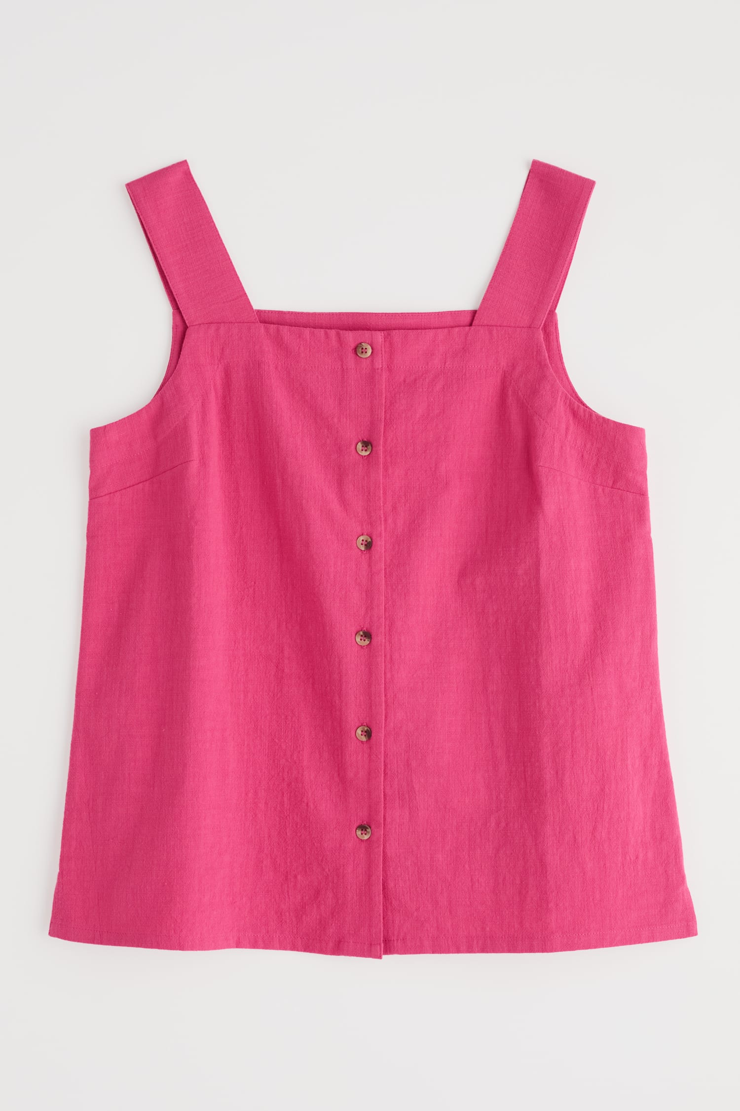 Perfect for those relaxed summer days, the Martlet vest is crafted from woven organic cotton and has an effortless, figure-skimming shape. Its broad straps are comfortable to wear, and create a stylish square neckline front and back. The neat row of front buttons adds a touch of extra character to this go-to summer piece. Team with shorts and sandals for a super-easy look.