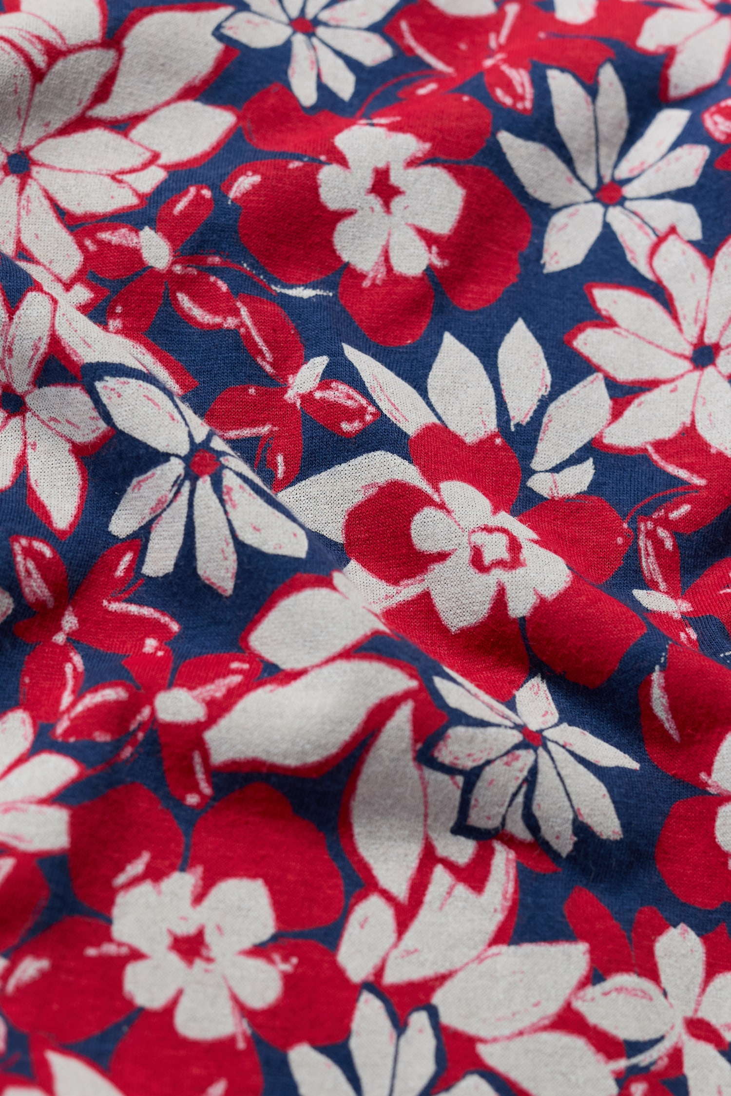 The perfect piece for summer getaways. We’ll pair the easy print on this collared V-neck shirt with plain cropped trousers or shorts. The soft, skimming jersey blend means it’s as cool and comfortable as a T-shirt.