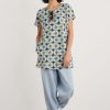 Woven from soft organic cotton, this tunic top has an easy shape and a bib detail with pretty gathers under its notch neckline. The simple A-line shape is finished with details that are inspired by the practical workwear of Cornish artists: button fastenings for the roll-up sleeves and in-seam pockets.