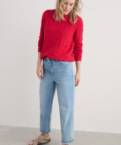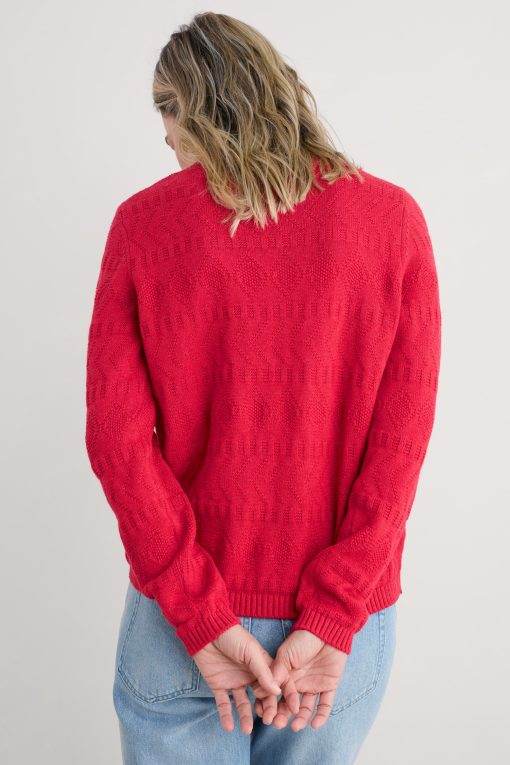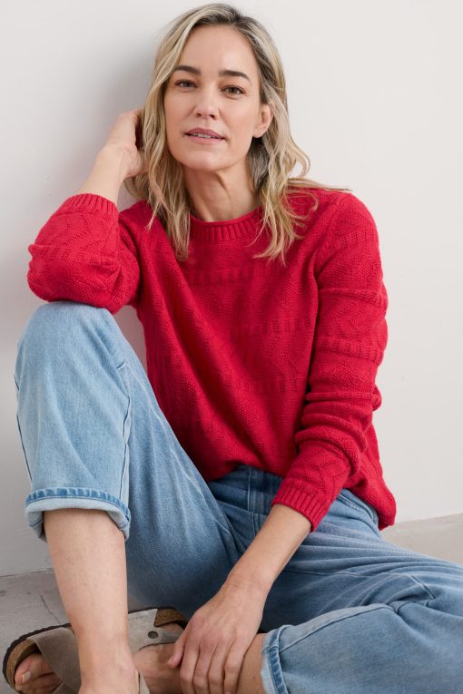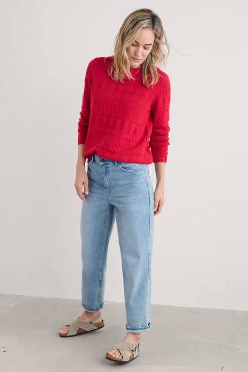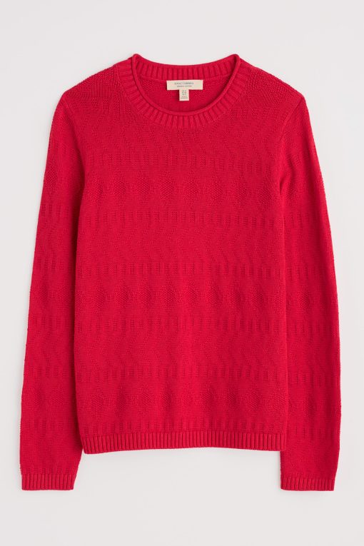 A soft and breathable knitted organic cotton jumper, with beautifully tactile stitches through the body. The textured patterns are inspired by the warm, practical knitwear of Cornish fishers, which often had patterns unique to the wearer’s home harbour. It’s our lighterweight summer tribute, with a comfy ribbed crew neck and cuffs.