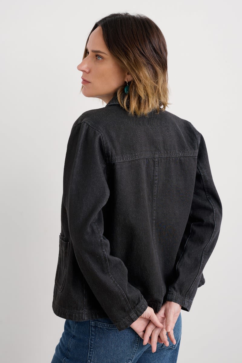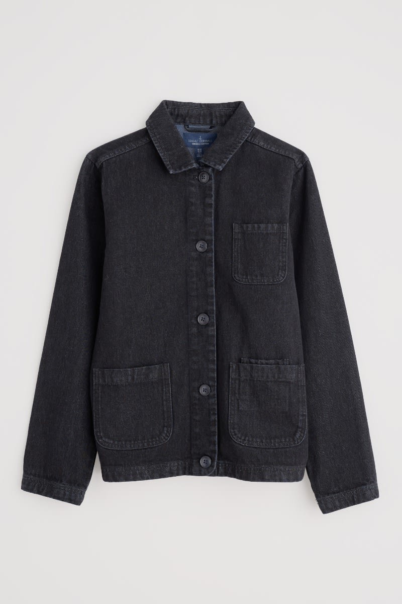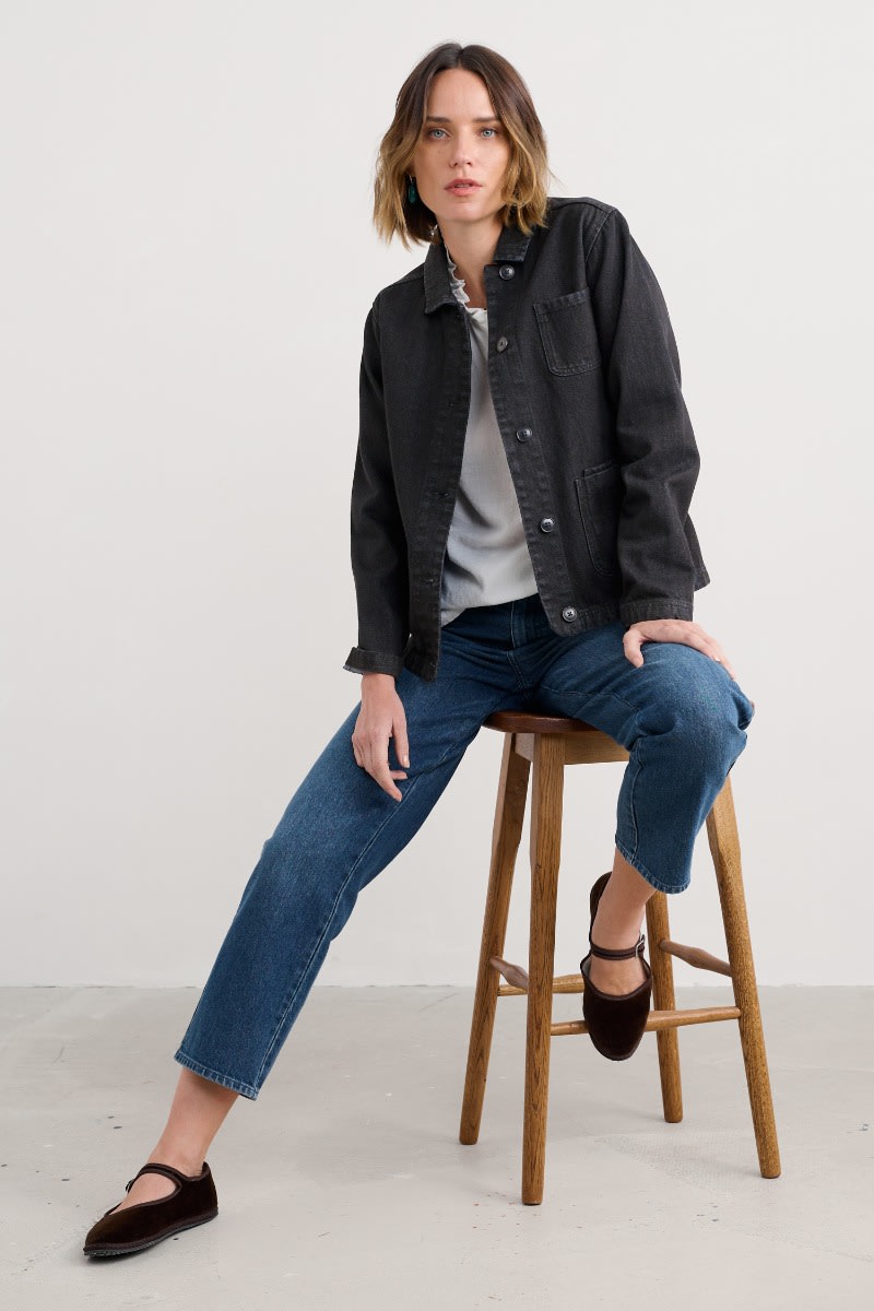 A straight denim jacket crafted from organic cotton. The timeless silhouette is inspired by worker jackets with a relaxed shape, button front and three patch pockets. A layer that will see you through the seasons, wear it over everything from striped T-shirts to print dresses.