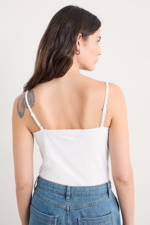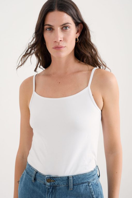 A simple layering essential, made with care and attention to detail. The Salt Pond has a round neck with adjustable spaghetti straps in a soft, stretch jersey. Perfect for layering, or styling on its own.