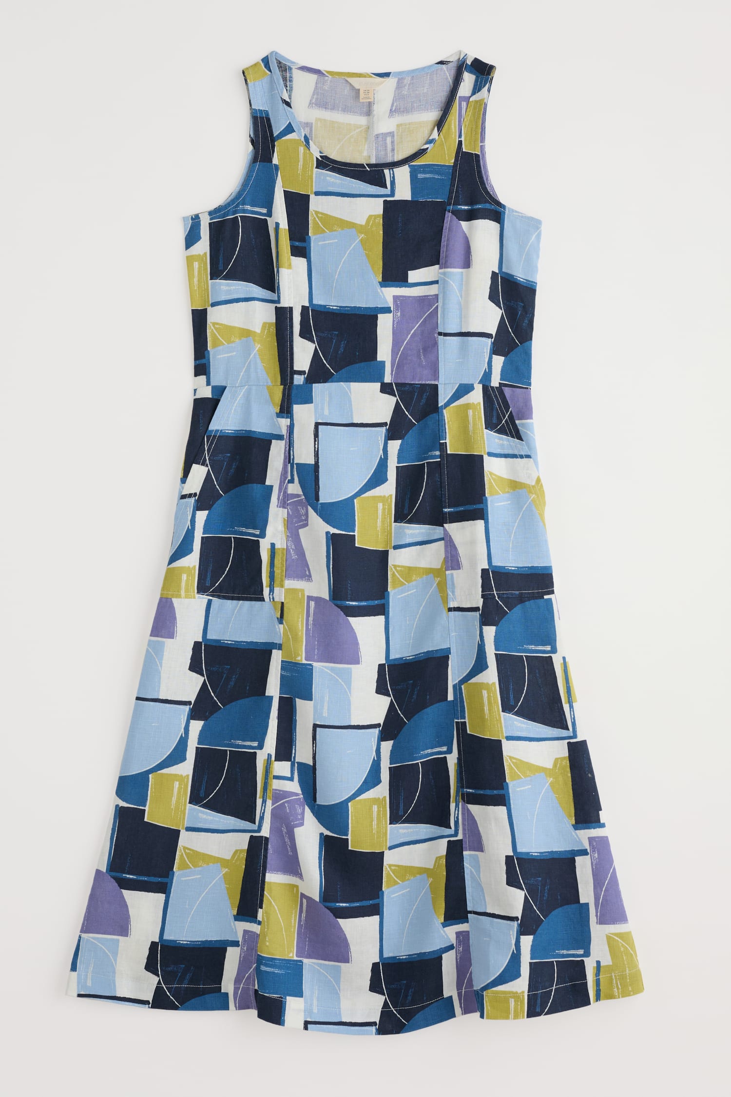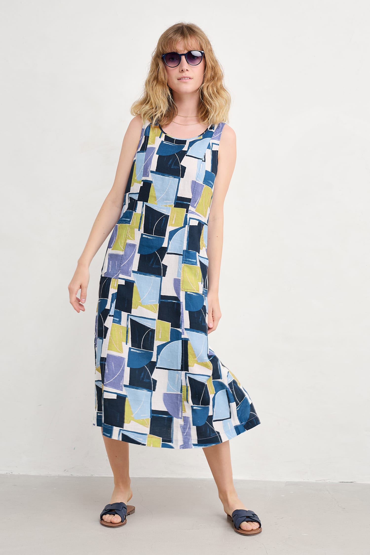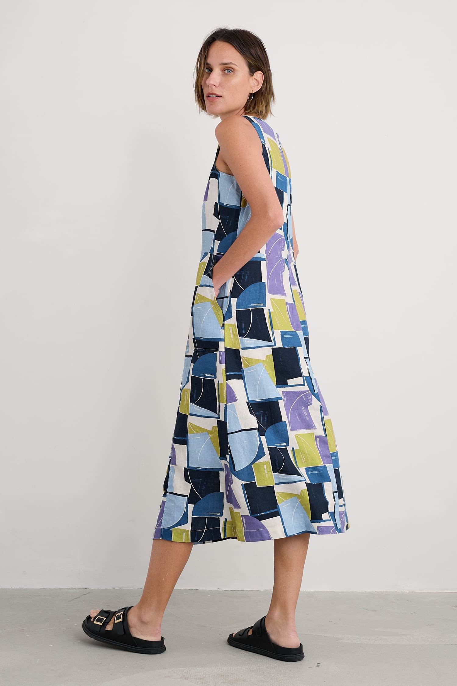 A sleeveless version of our midi Grass Wave Dress, woven with 100% pure linen. We’ve used careful design to perfect the shape and fit, from the round neckline and bodice shaping to the curved waist seam and flared skirt. Choose from a selection of vibrant garment-dyed colours and pair with sandals to suit your summer.