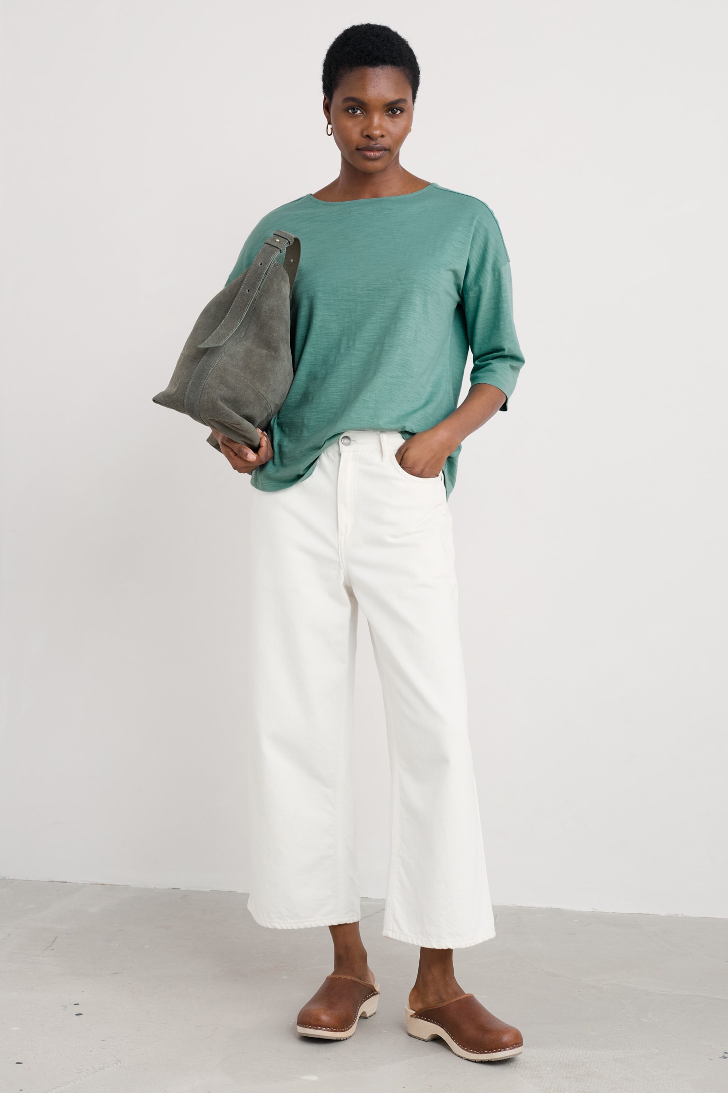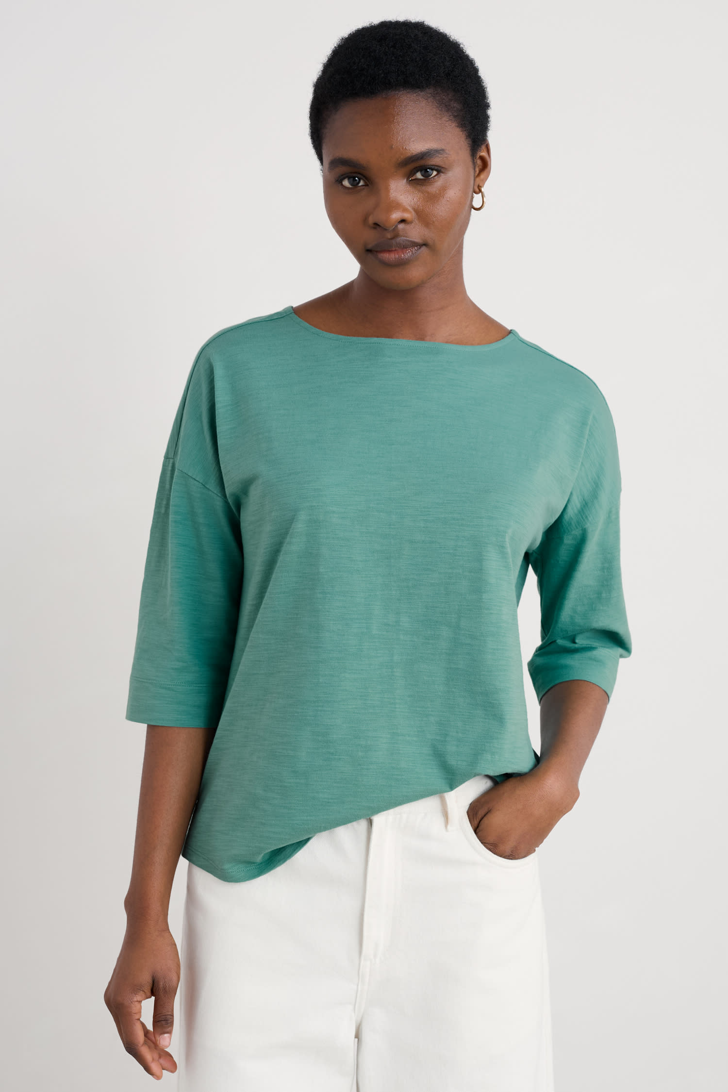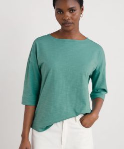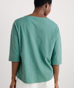 Seasalt Cornwall Women’s Tremayne Quay Jersey Top – Organic Cotton Half Sleeve Top | Sage Leaf
