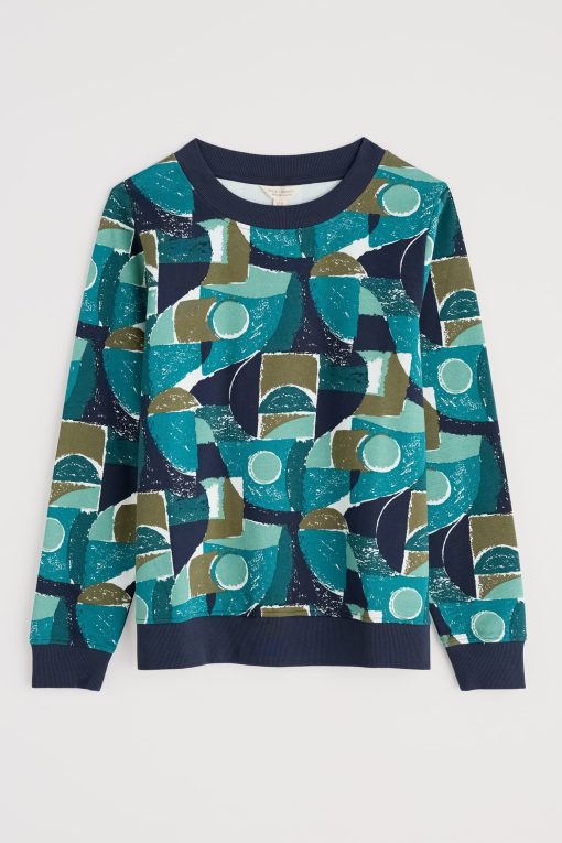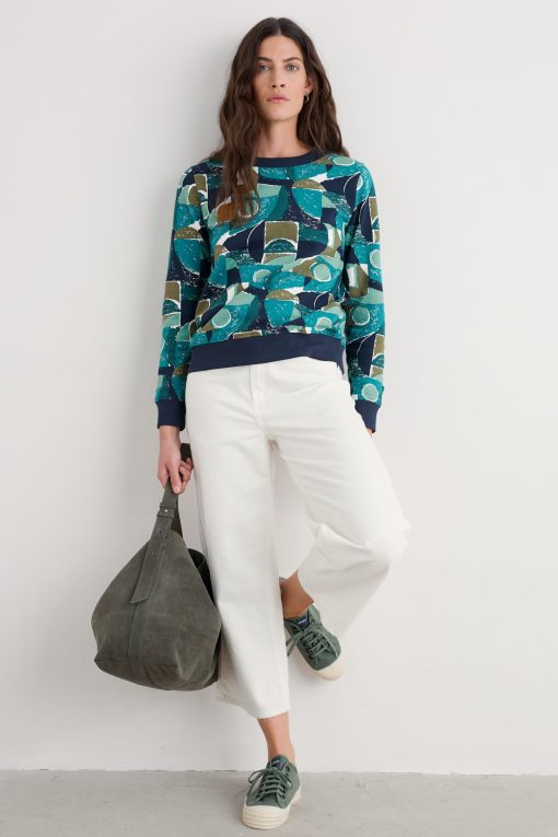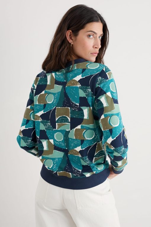 A vibrant organic cotton crew neck sweatshirt, with a pattern created by our in-house designers inspired by Cornish coastal shapes and flowers. Perfect for bringing a bit of colour and comfort to days on the go.
