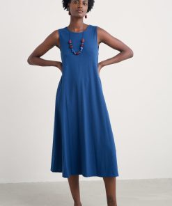 A timeless dress for summer made from a soft jersey blend. The slim-fitting sleeveless dress flares out towards the midi-length hem, and we’ve added a touch of stretch for comfort and fit. A soft scoop neckline completes the lovely simplicity of this versatile piece.