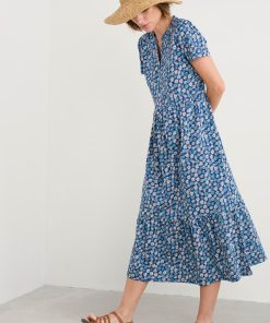 An easy-wearing midi sundress for summer days, made from soft organic cotton jersey. The bodice has vintage-style shirring all the way round for a flattering waisted shape. Wide straps give you a touch of support while creating a square neckline front and back. A pair of in-seam pockets adds the finishing touch.