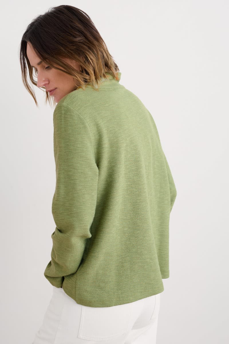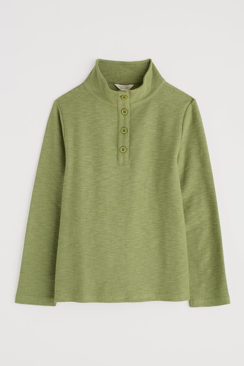A soft sweatshirt made from loopback jersey cotton, with a stand collar that fastens with statement tonal buttons. An easy fit make it perfect for layering through the seasons, whether it’s under a cosy coat in winter or thrown over a striped top on long summer evenings.