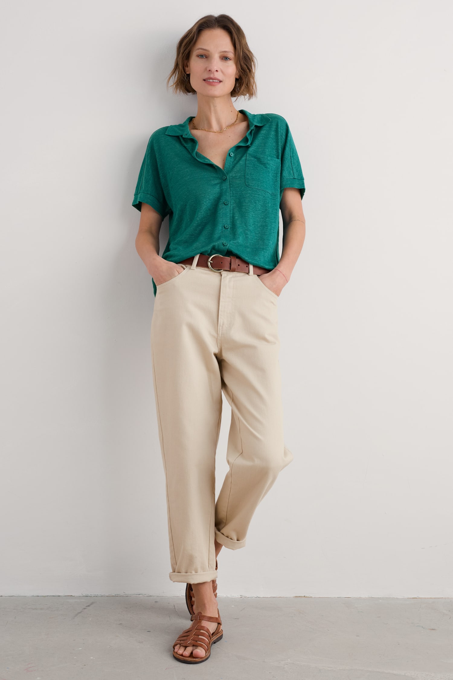 Our Parsley Fern Shirt is made from supple linen jersey, which is lightweight and comfortable for warm-weather wear. This easy-fitting, button-through shirt has grown-on sleeves and a gently curving hem for a relaxed look. We’ve finished it with a neat collar and a chest pocket. The lovely drape and texture of this pure linen shirt will elevate your everyday style this summer.