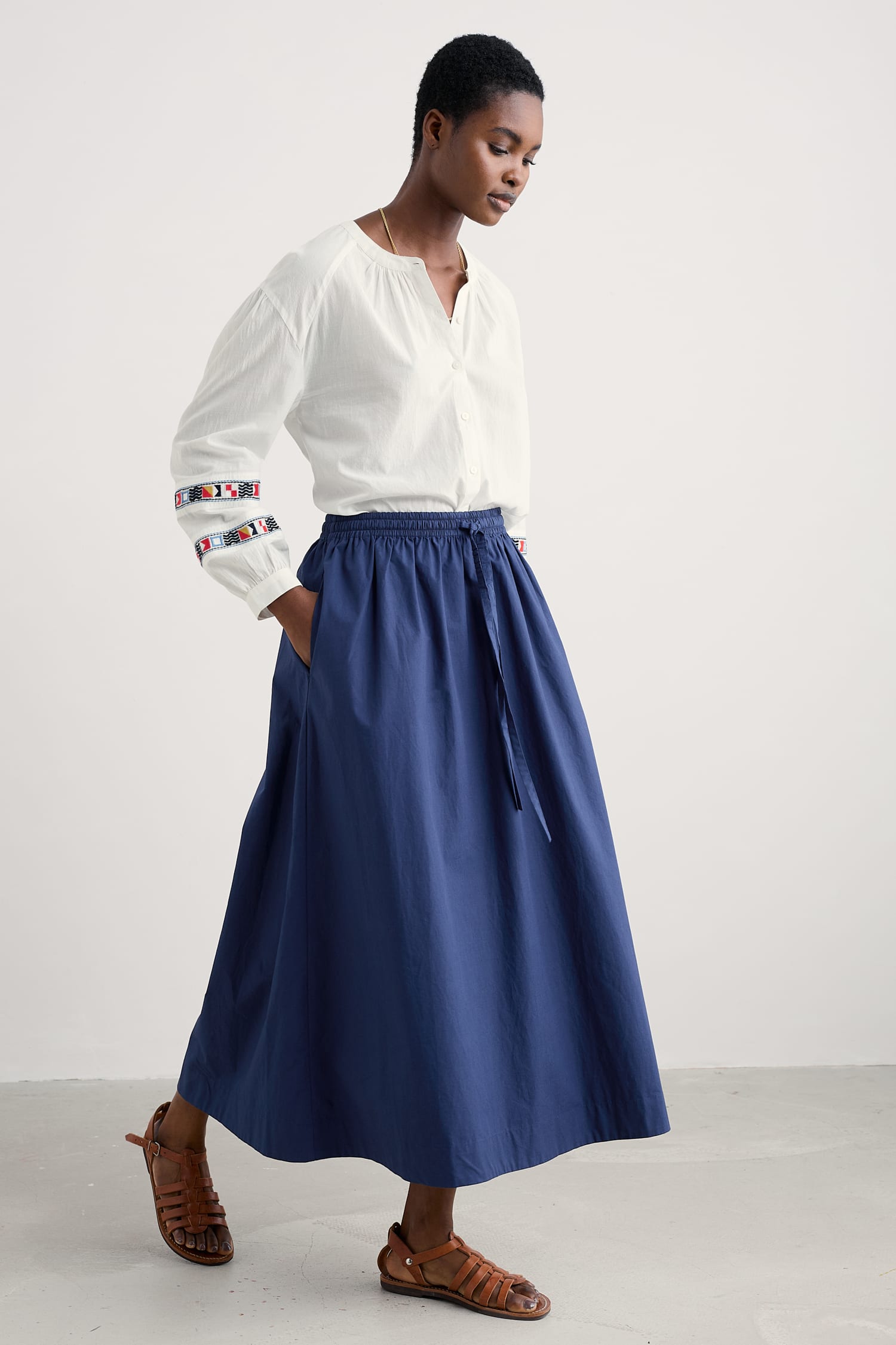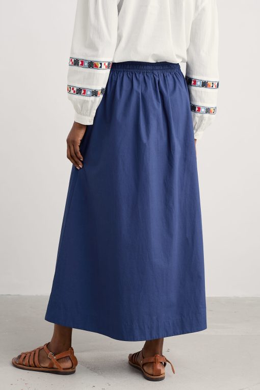 The perfect piece for warmer days, the Lake Skirt is made from GOTS-certified organic cotton with a cool and lightweight poplin weave. The ankle-length skirt is full for a floaty feel, and the elasticated waist makes it a comfortable choice for day-long wear. We’ve finished it with a self-fabric waist tie and those always-appreciated side pockets.