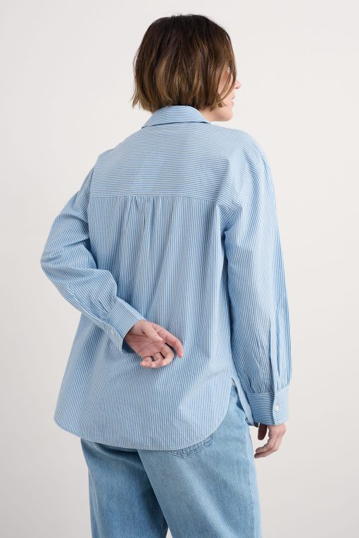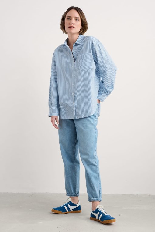 Our oversized longline shirt is perfect for laid-back days. Made from pure organic cotton, it’s naturally breathable and softly comfortable to wear. Subtle dropped shoulders and gathers at the back yoke add to the relaxed feel, while the gently rounded hem gives a neat finish when the shirt’s worn loose. The chest pocket, classic collar and buttoned cuffs are nods to timeless shirting.