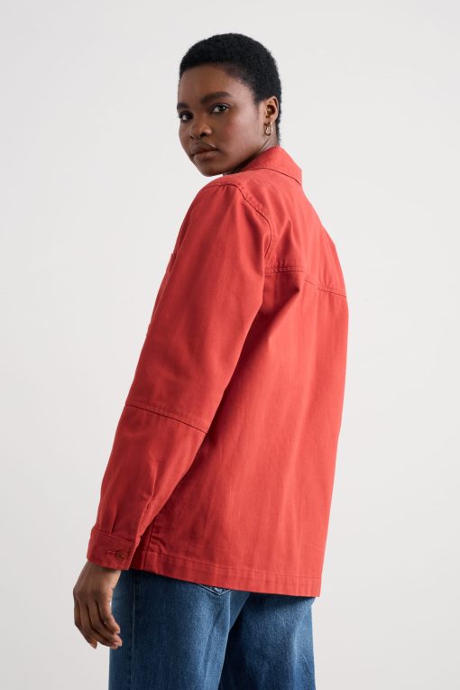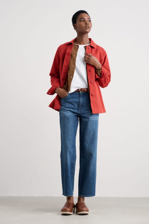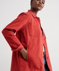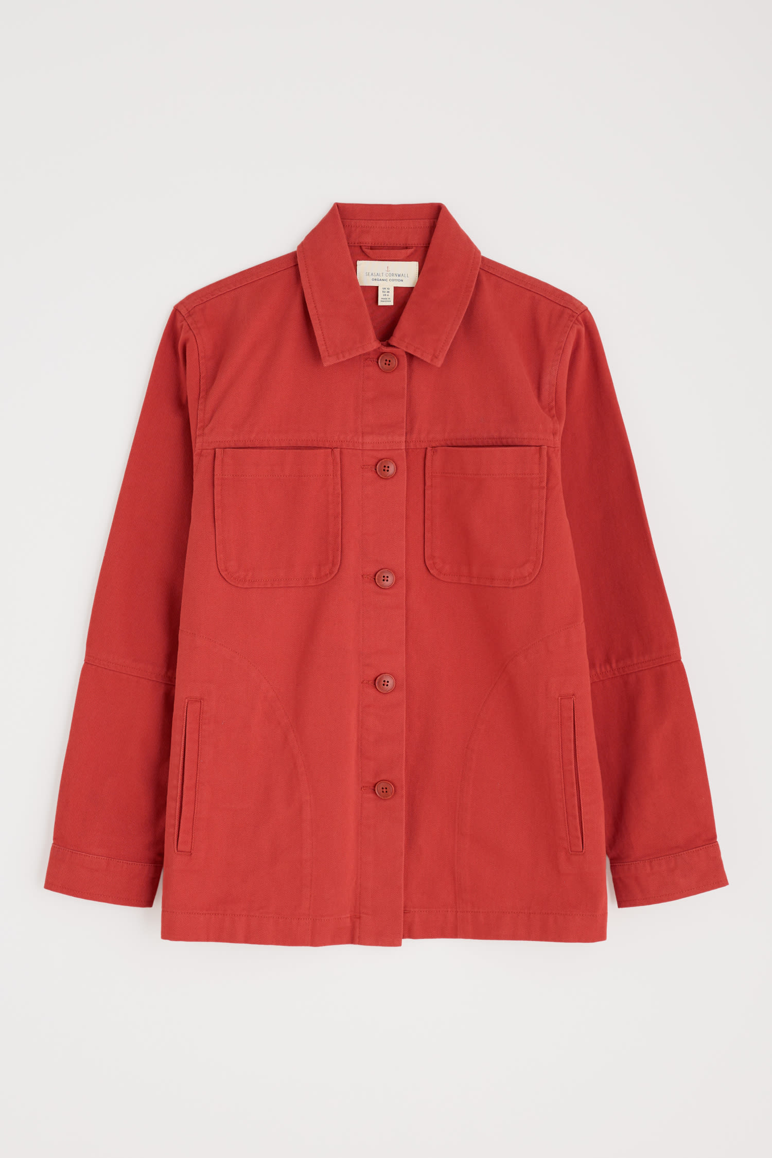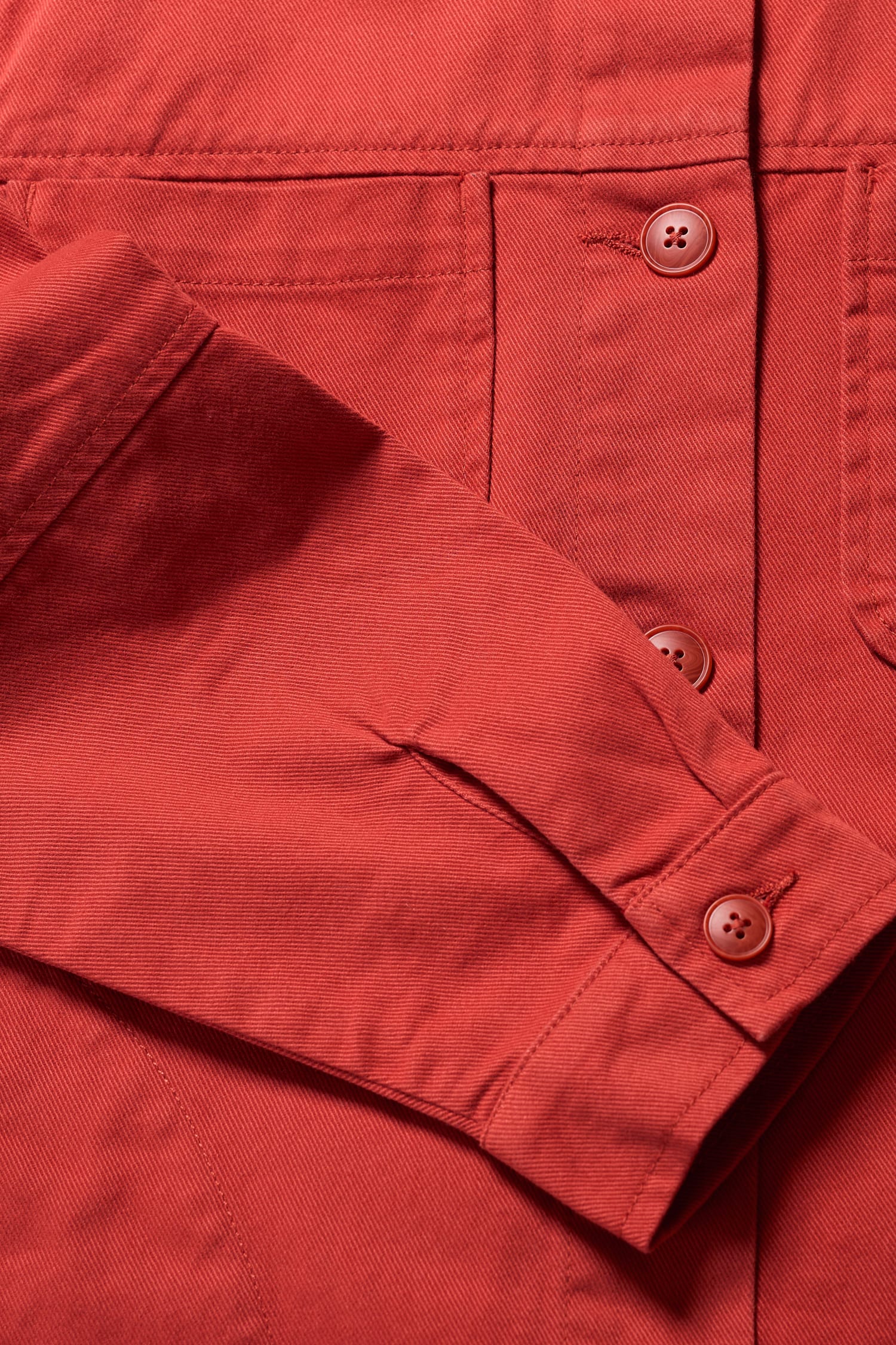 When you need a relaxed extra layer, reach for our oversized jacket, made from organic cotton twill. Inspired by traditional workwear, the thigh-length jacket has handy patch pockets, a collared neck and working cuffs. Dropped shoulders and soft blouson sleeves emphasise the casual feel, and details such as the mock-horn buttons and the self-fabric loop add thoughtful finishing touches.