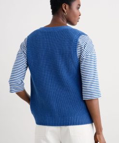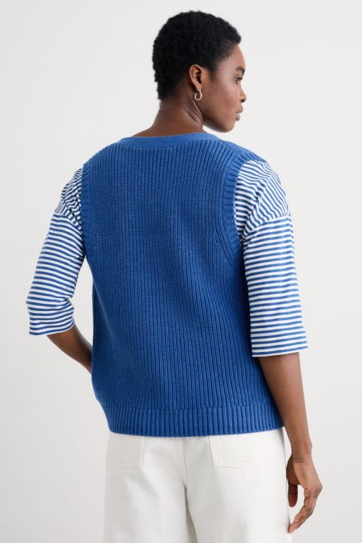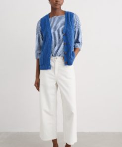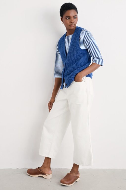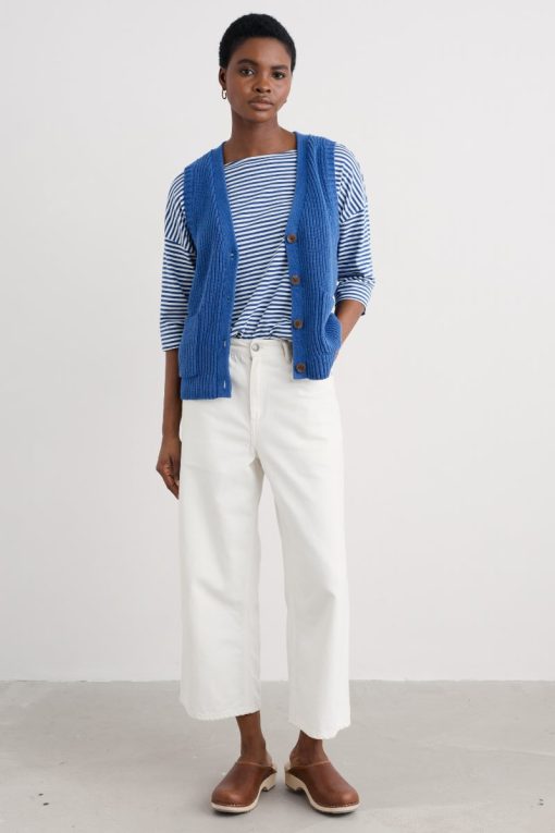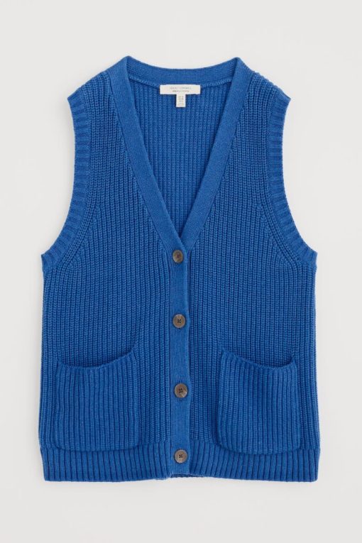 Our Swanpool knitted vest is crafted from soft organic cotton yarn with a traditional texture. Patch pockets and ribbed trims at the V-neck, armholes and placket add extra detail, while the neat buttons let you wear it open or closed. Perfect for layering.
