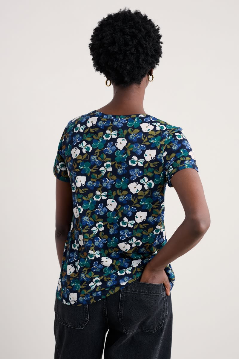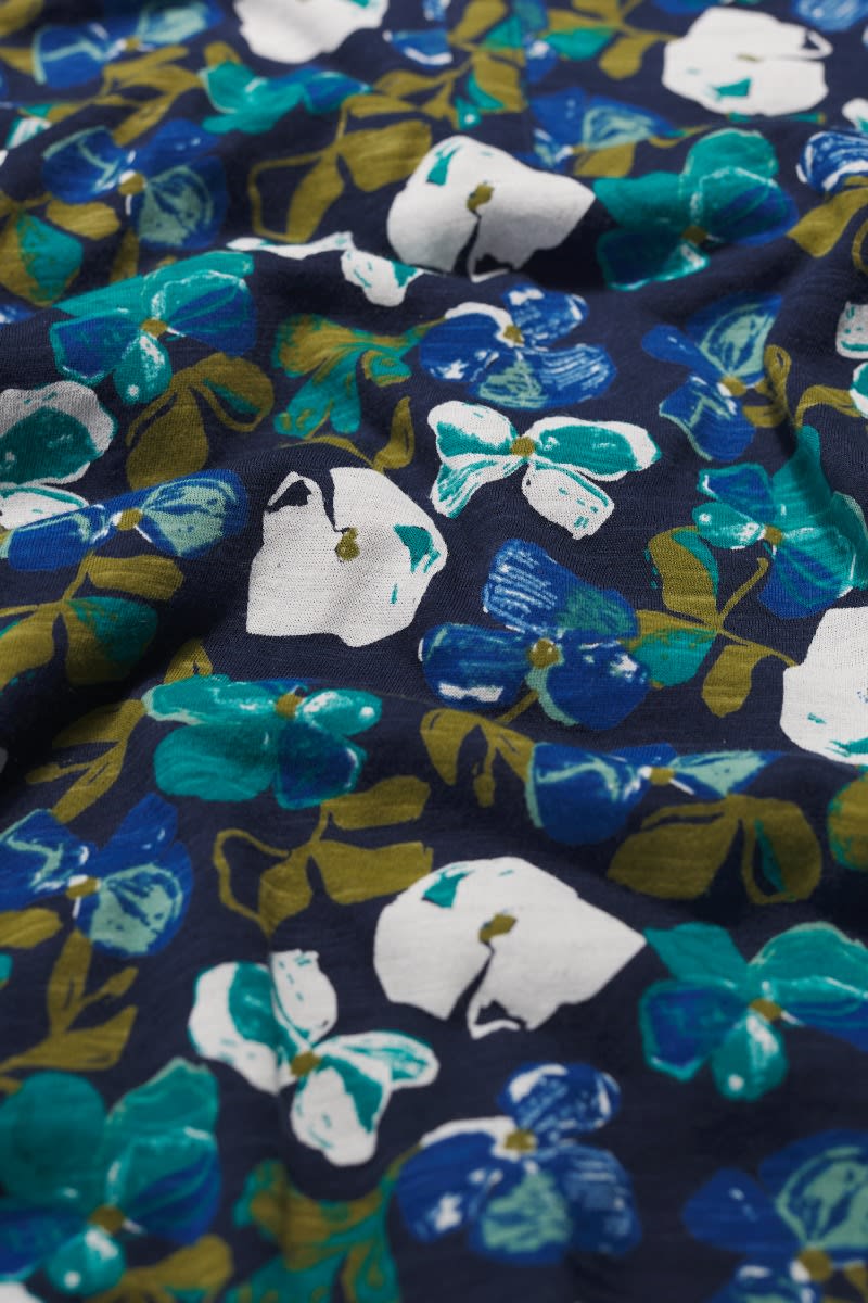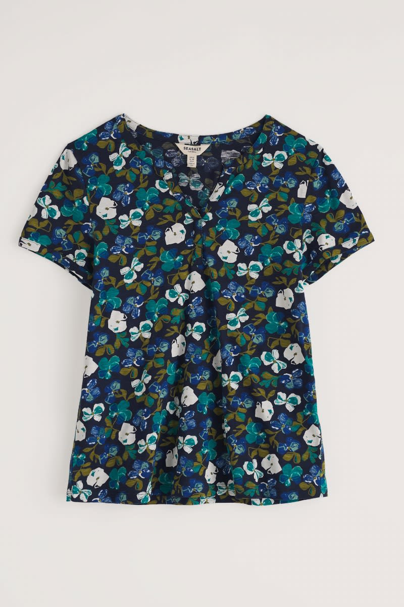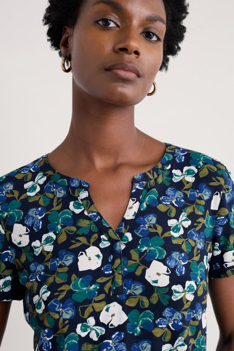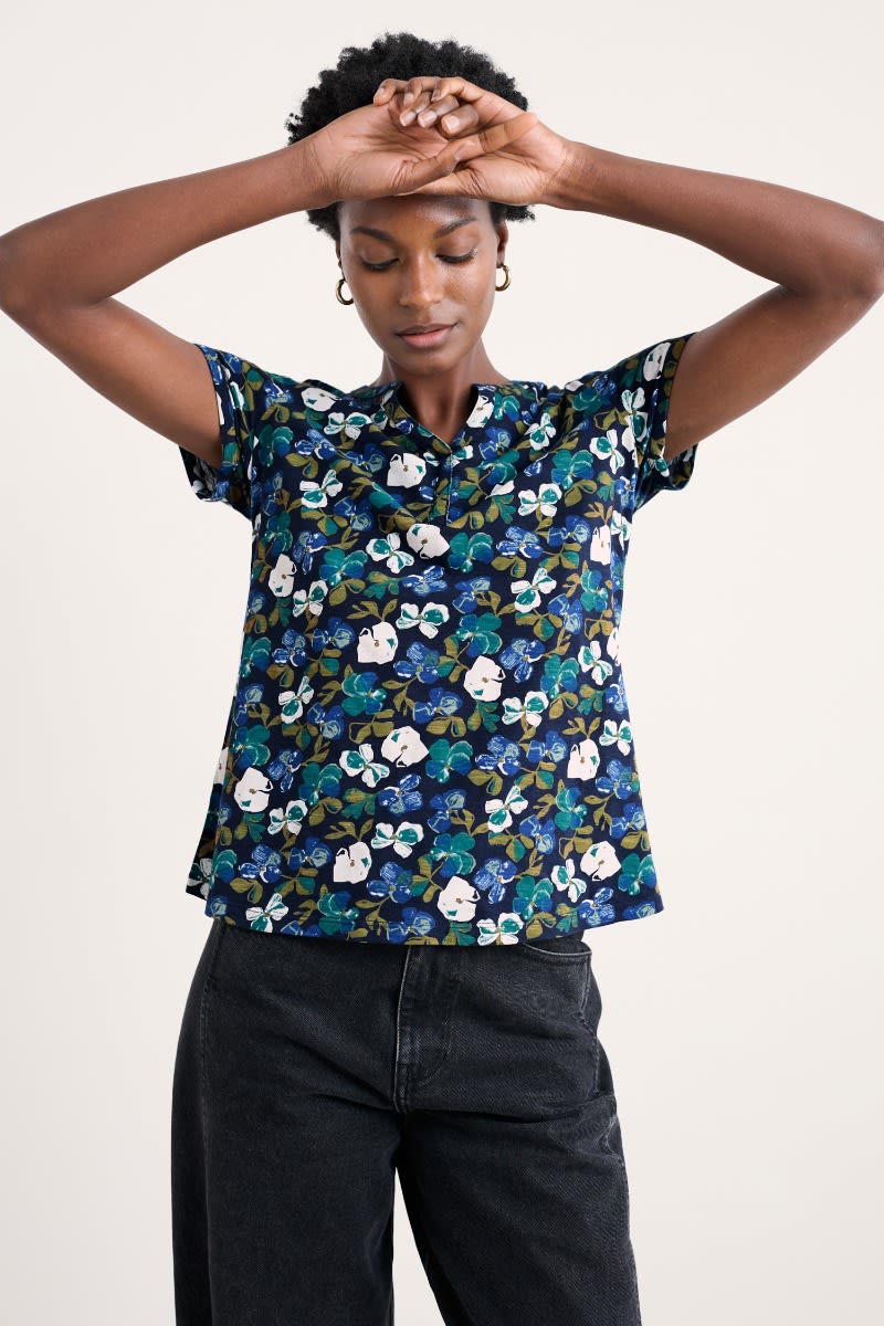 An effortless summer top with a notched neckline and subtle flared shape, made from soft and breathable organic cotton. Perfect for pairing with narrow crops and culottes.